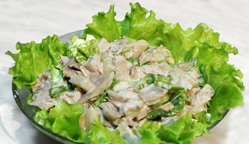 Как-то в Советское время было не принято делать салаты с маринованными грибами, их просто , как гордость хозяев , выставляли на стол в хрустальных вазочках. И мне эта идея показалась очень оригинальной. Интуиция меня не подвела, салат действительно вкусный!